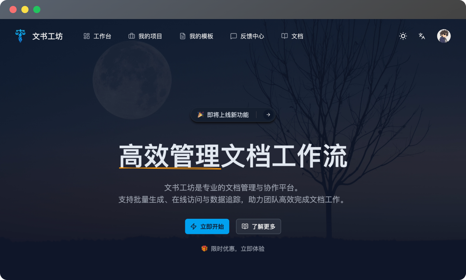 文书工坊(Lawspark)是一个专业的文档管理与协作平台,提供文书生成、在线访问和数据追踪功能,帮助团队高效完成文档工作流。